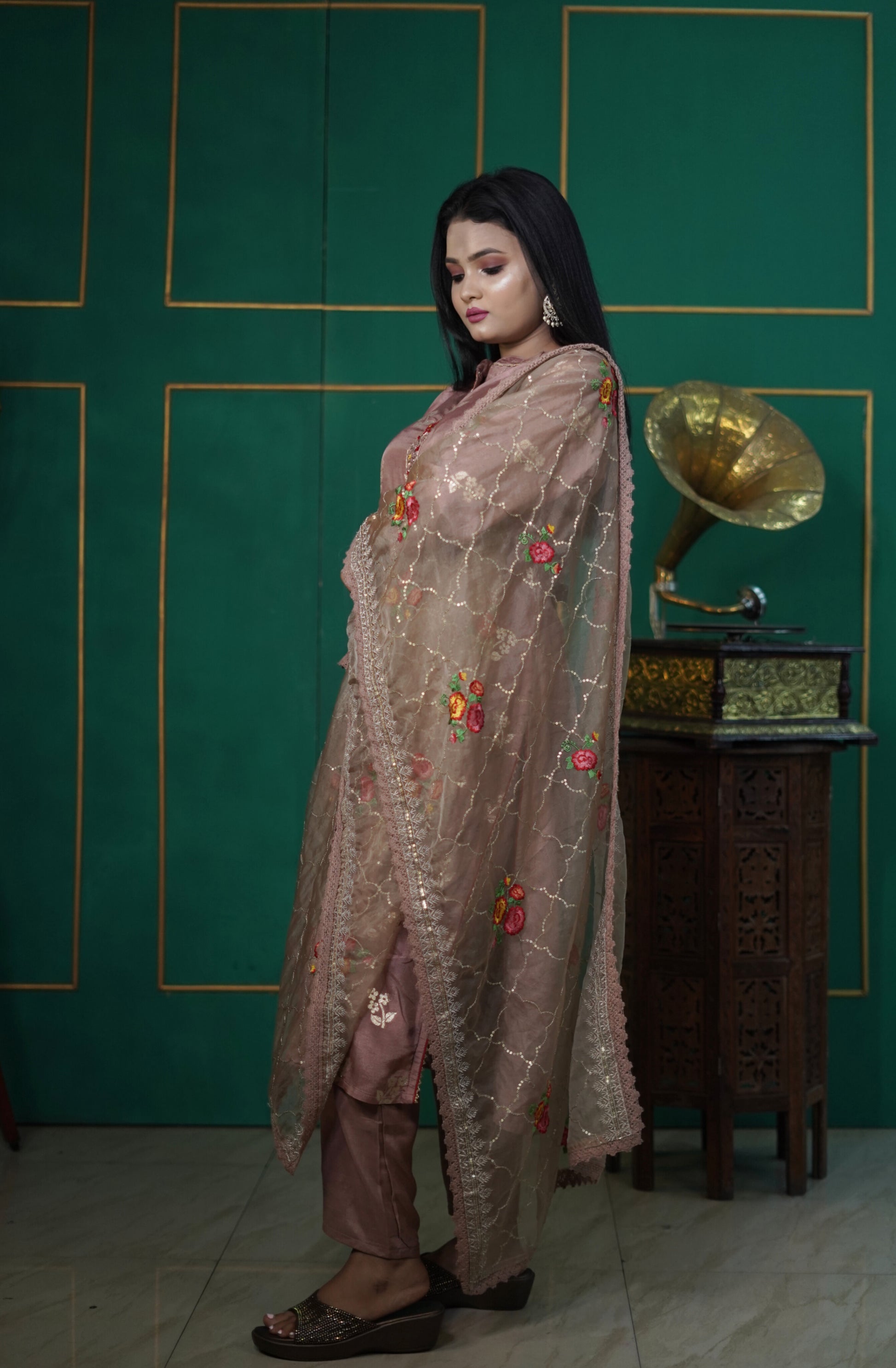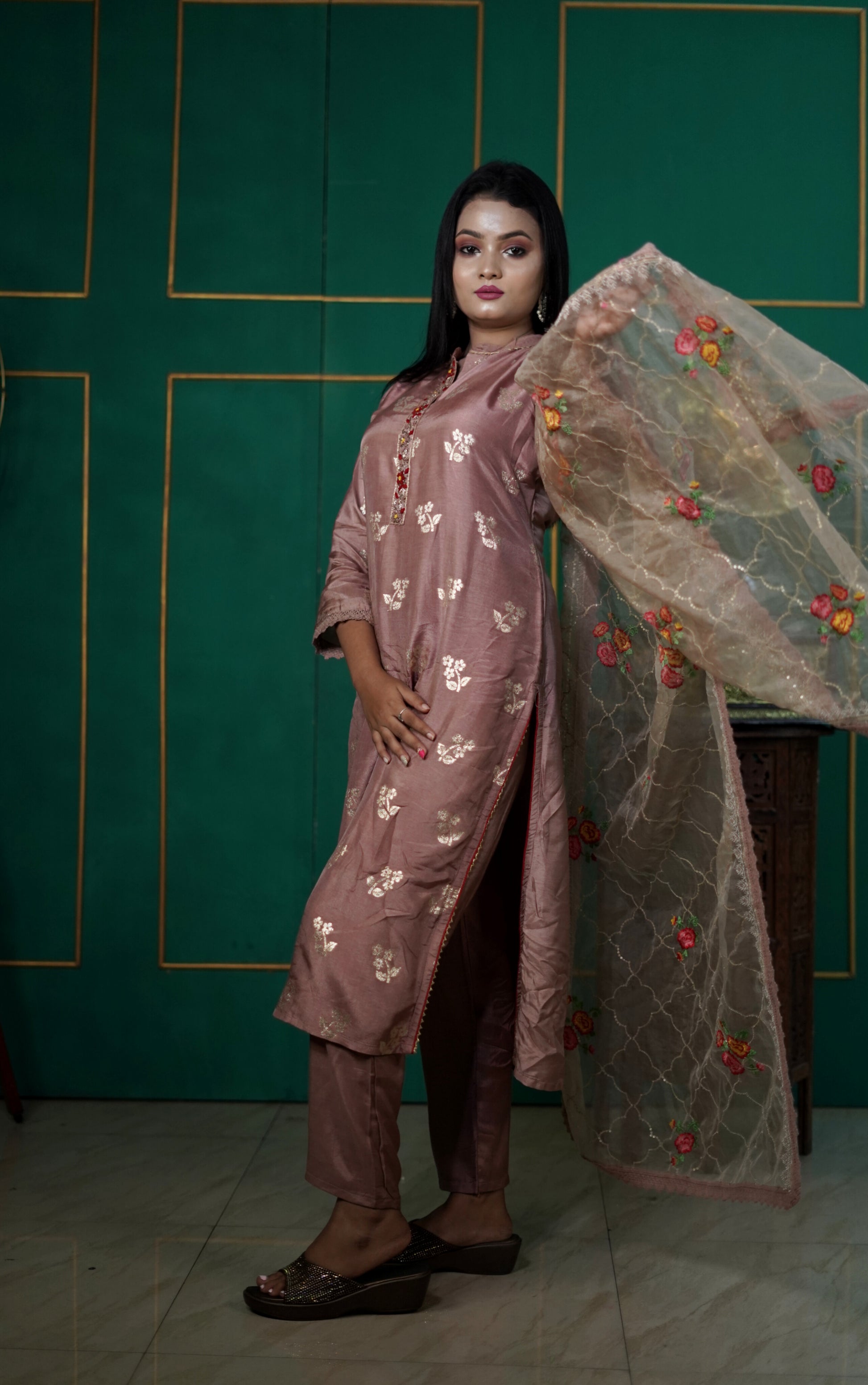 Floral Muslin Cord-Set with Shirt Style Collar top, Paired with Muslin Pants . Gives yourself a Comfy look with Us .
